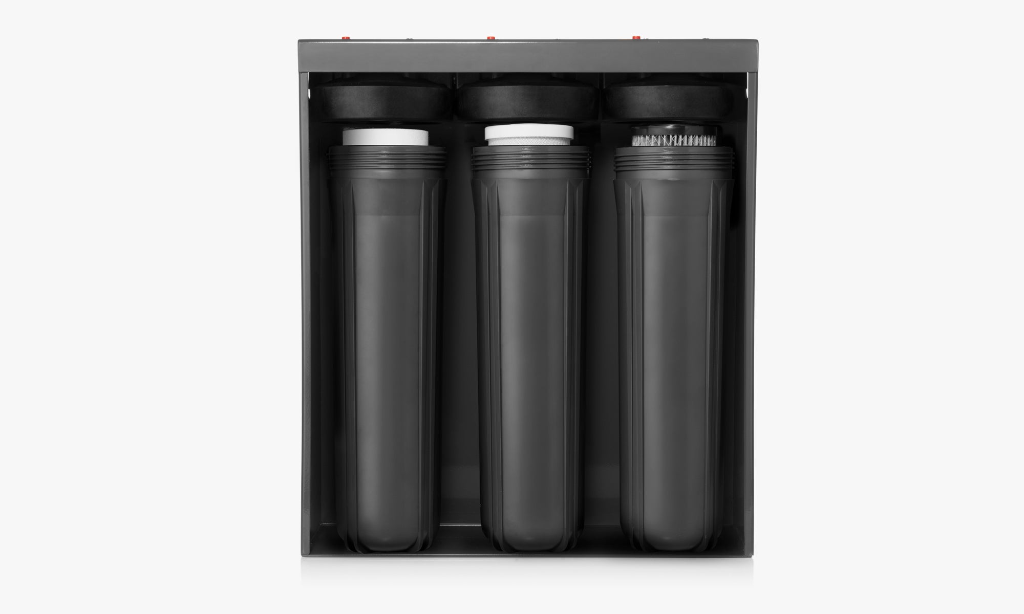 Say goodbye to unsightly exposed water filtration systems that take up lots of space. Take a peak inside to see how we designed our whole home water filtration system to be sleek and compact with all premium components contained within a protective powder-coated aluminum chassis.